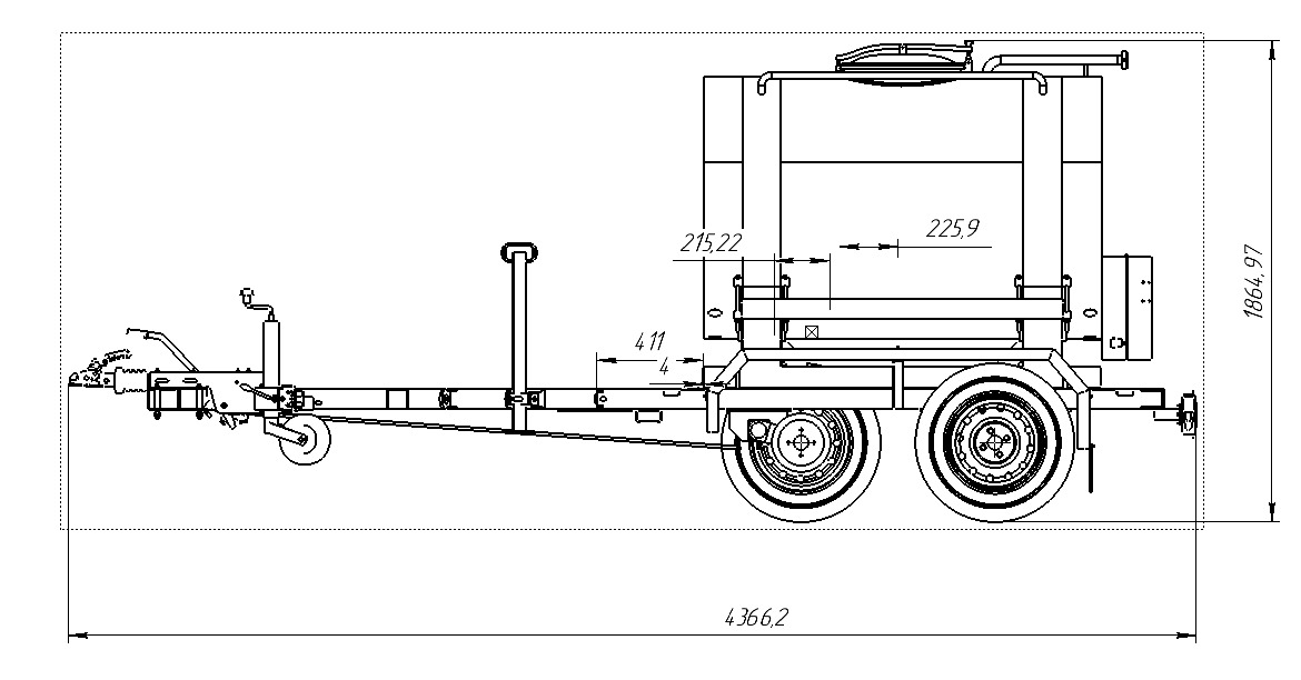 Легковой прицеп-цистерна для перевозки пищевых жидкостей - это компактная транспортная емкость, предназначенная для перевозки и хранения небольших объемов жидких пищевых продуктов, установленная на шасси легкового прицепа.